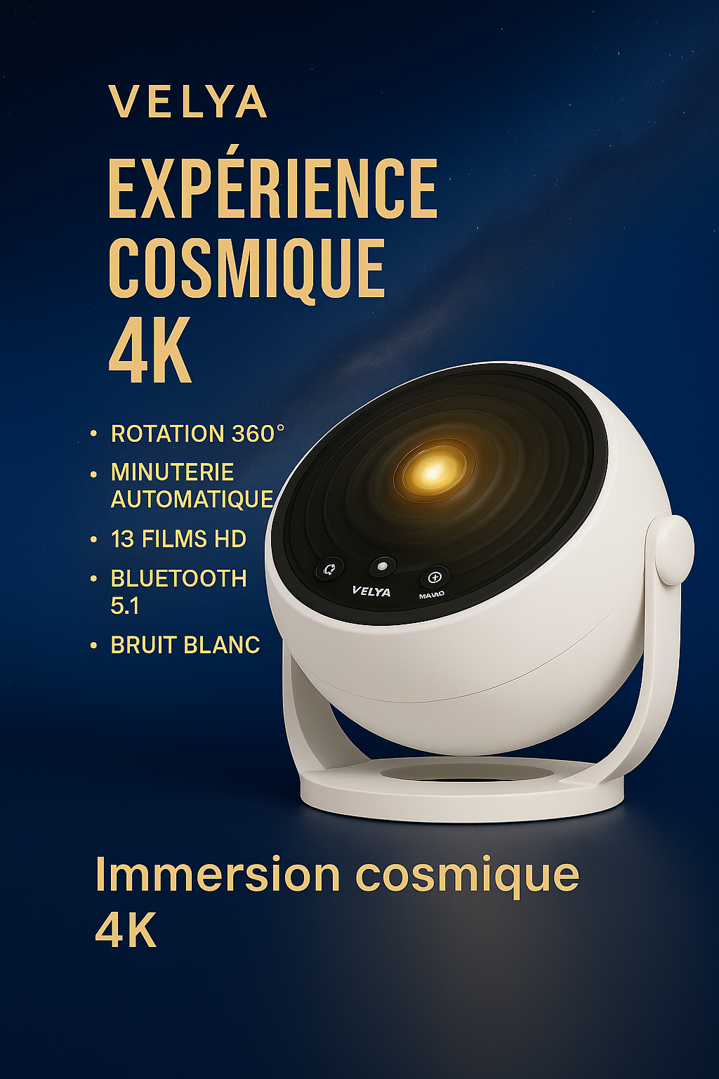 Un ciel profond, des couleurs vibrantes, un calme enveloppant… VELYA™ transforme votre pièce en un univers doux où l’on se sent proche, apaisé, connecté.